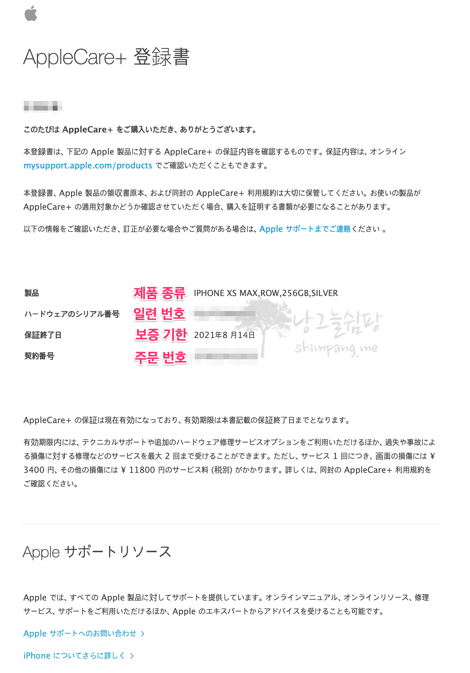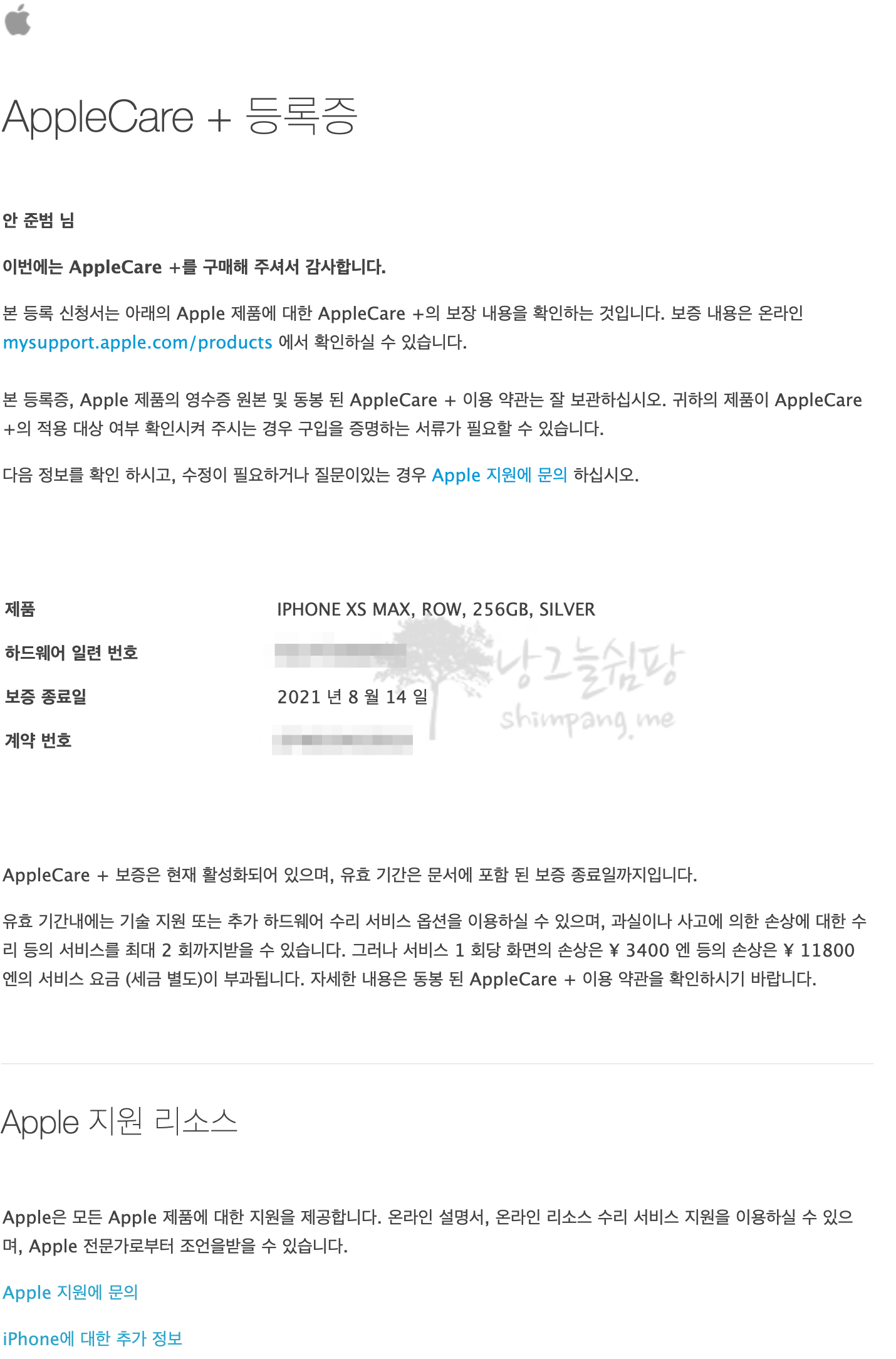이상으로 아이폰 Xs Max 애플케어 플러스 서비스 등록하는 방법에 대한 포스팅을 마치겠습니다.