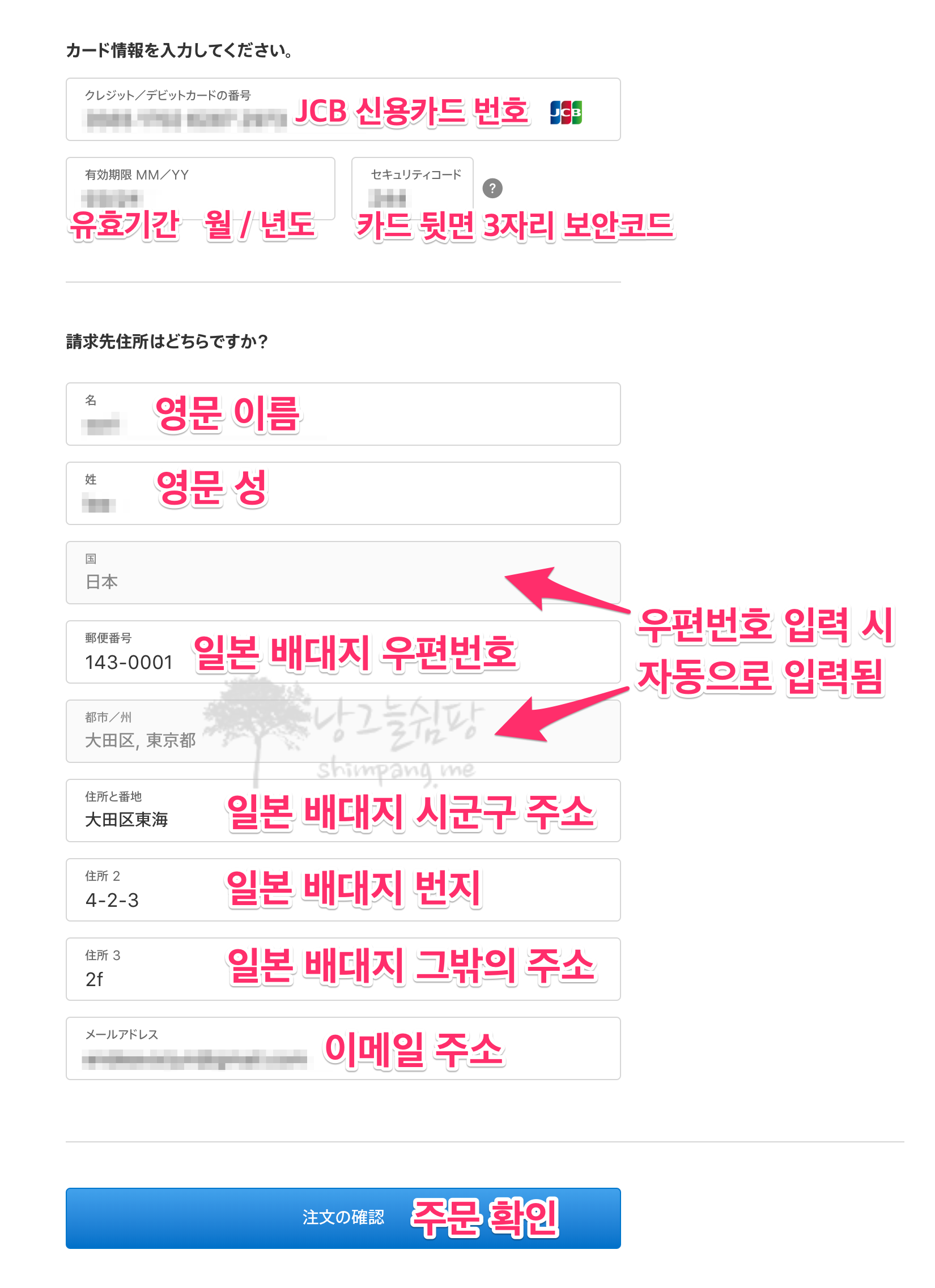 아래에 표시해둔 정보를 참고하면서 결제 정보를 차근차근 입력합니다.