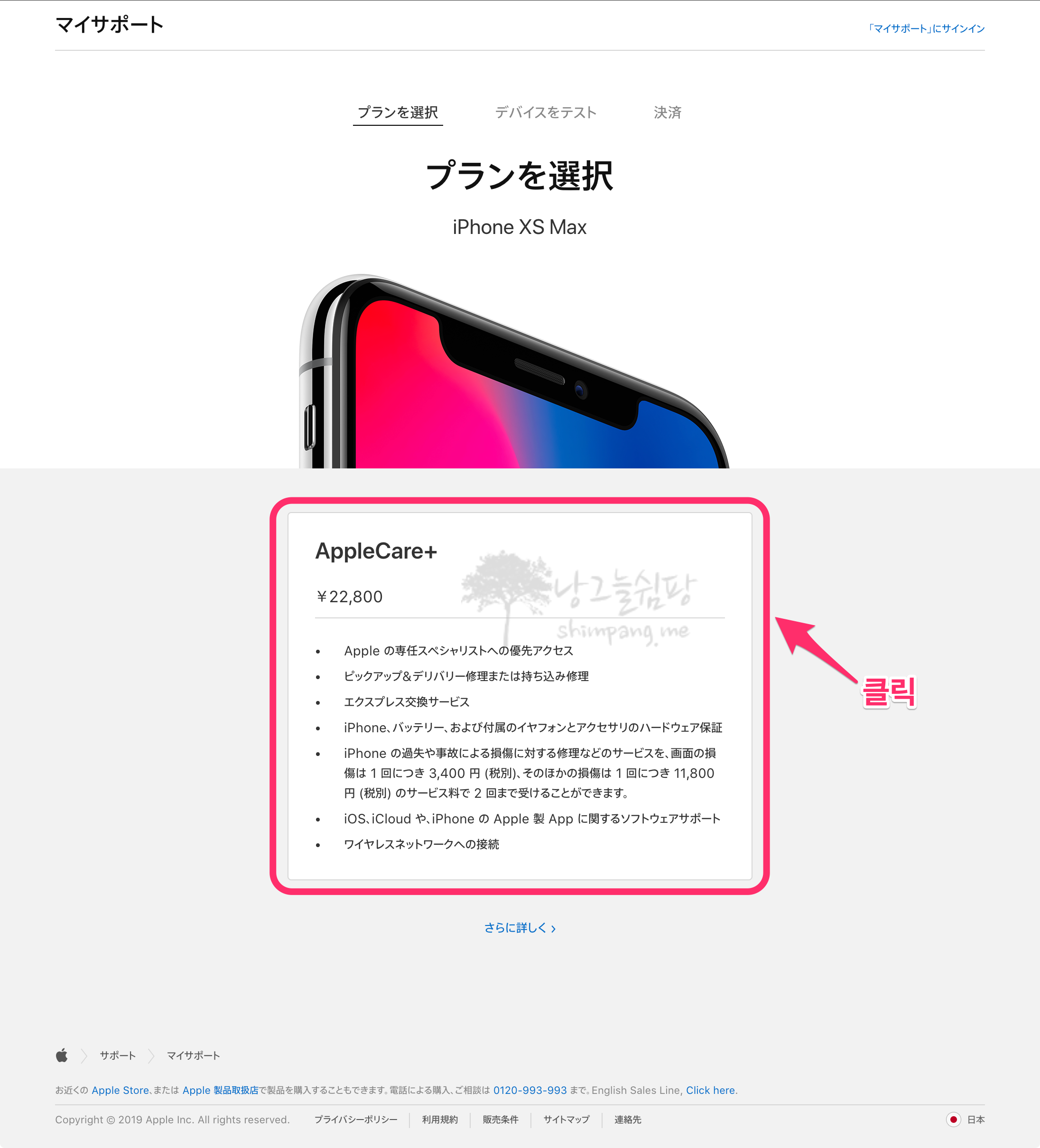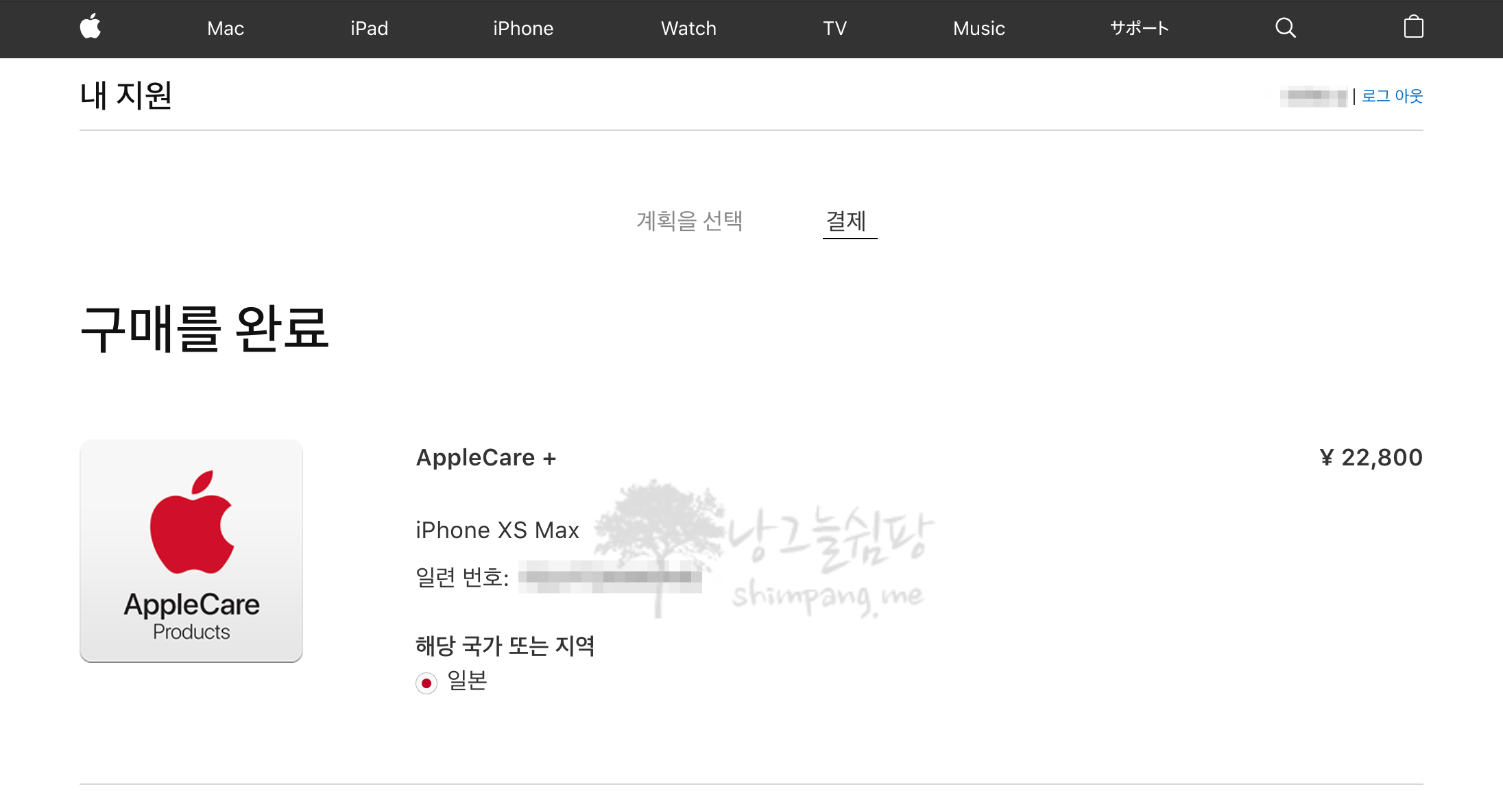 JCB 카드를 소유하고 있는 가족의 도움을 받아 애플 일본 사이트에서 애플 케어 플러스를 가입하게 되었습니다.