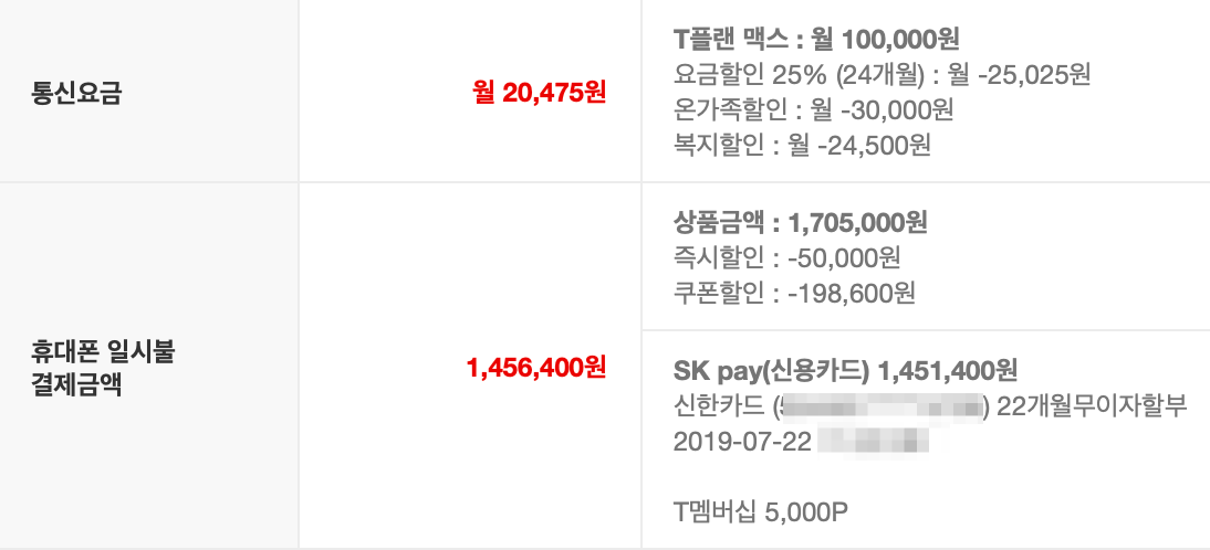 SKT 온가족 할인 결합을 이용하고 있어서 기기변경만 가능하기에 번호이동은 선택지에 없었습니다.