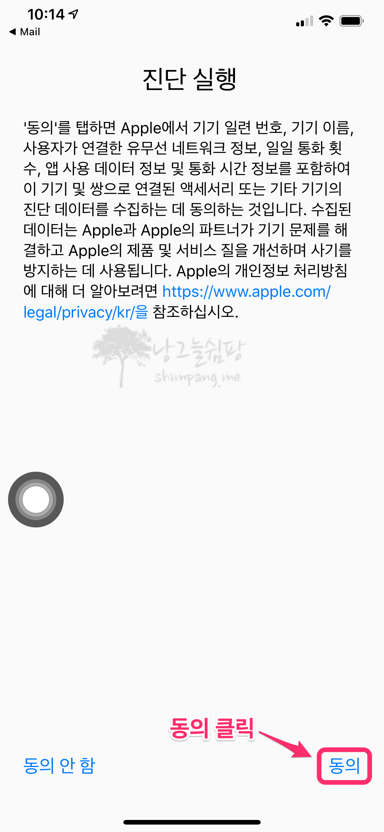 진단 실행 화면이 나타나면 오른쪽 아래의 동의를 클릭합니다.