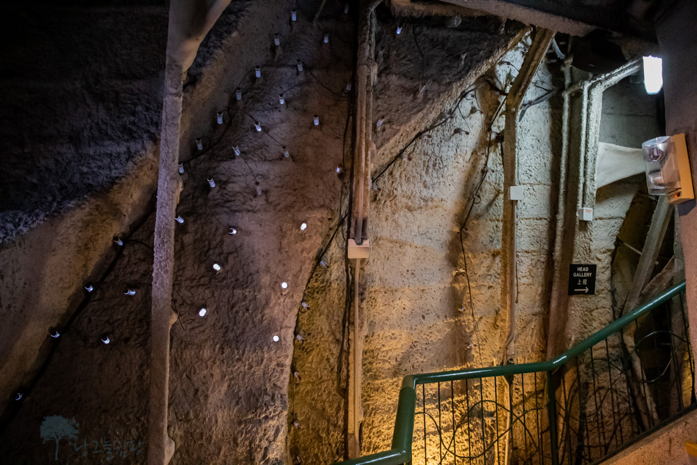 엘리베이터에서 나와서 오른쪽으로 올라가면 머리 전망대, 왼쪽으로 내려가면 입 전망대가 있습니다.