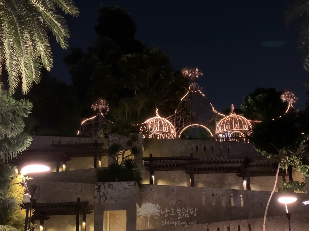 밤이 되면 조명이 숲을 밝히는데요, 걷기에 너무 좋습니다.