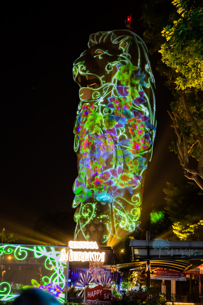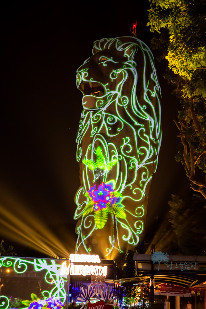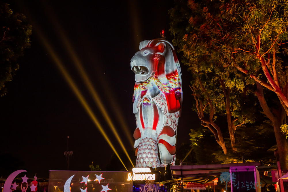 센토사 멀라이언은 저녁에도 볼거리가 풍성합니다.