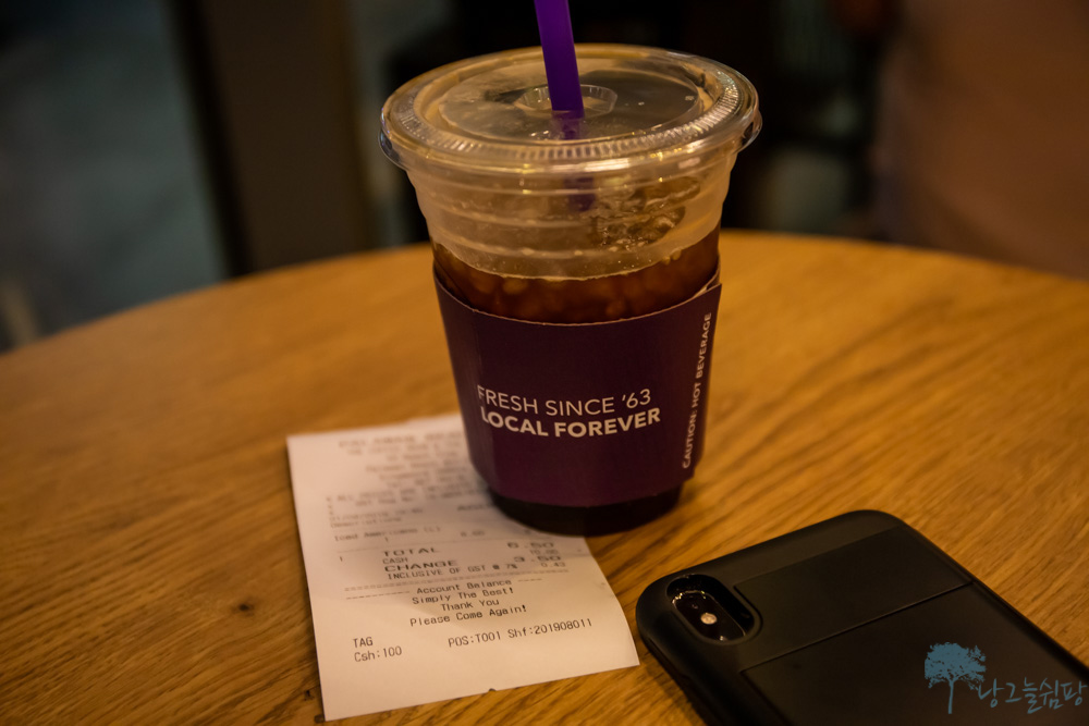 카페빈 카페 안에 앉아서 시원한 에어컨 바람을 맞으며 아이스아메리카노 라지사이즈 한 잔(6.5SGD, 약 5,700원)을 아내와 함께 마시면서 휴식을 취했습니다.