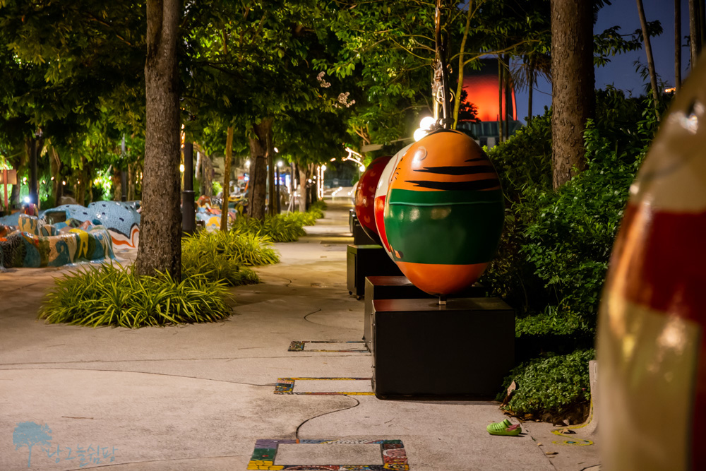 다양한 조형물이 있고, 양 옆으로 커다란 나무가 잘 가꾸어져 있어 정말 걷기 좋습니다.