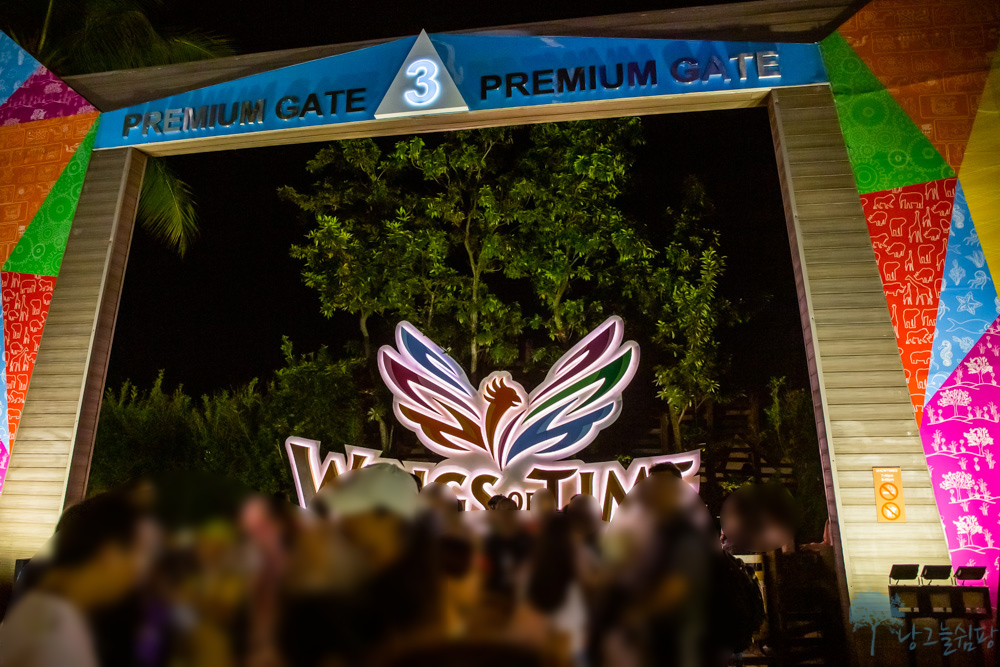 저와 아내는 공연을 보기 위해 윙스오브타임 공연장 3번 게이트로 향했습니다.