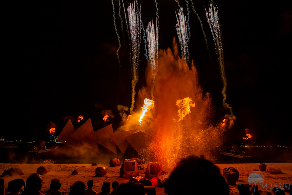 그 이유는 해가 지기 30분 전 일몰 골든 타임을 공연을 기다리며 허비하기 보다는, 윙스오브 타임 양 옆에 있는 팔라완 비치와 실로소 비치에서 아름다운 인생 사진을 남기시는 것이 훨씬 좋기 때문입니다.