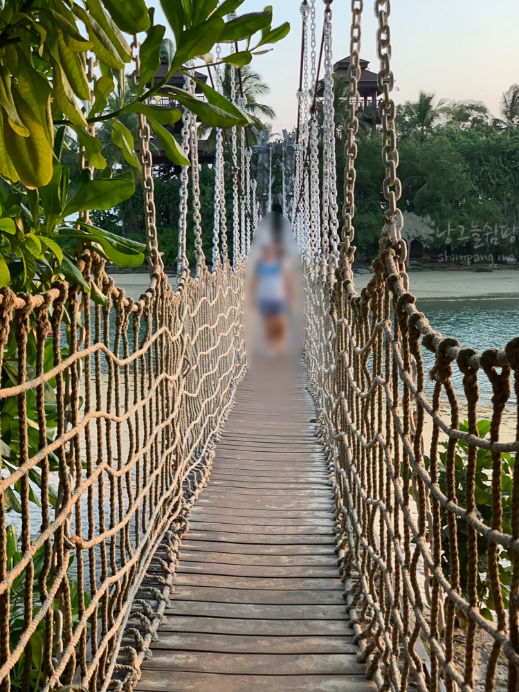 팔라완 비치에서 팔라완 섬으로 넘어가기 위해서는 사람 2명이 겨우 다닐 수 있는 좁은 폭으로 된 출렁다리를 건너가야 합니다.