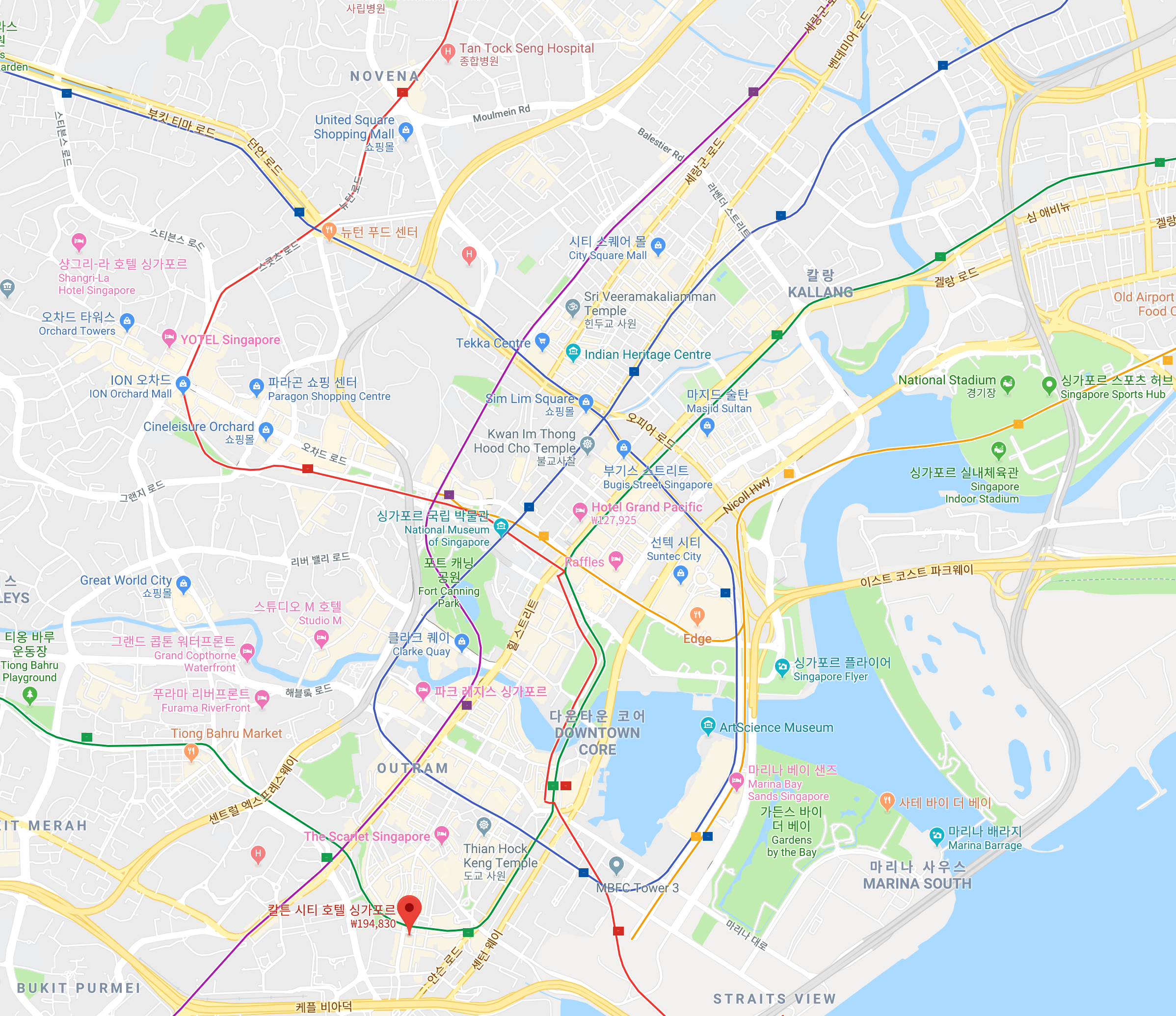 아래는 칼튼 시티 호텔 싱가포르에서 주변의 관광 명소까지 거리 정보입니다.