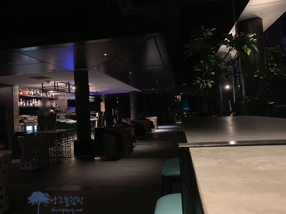 싱가포르에서의 마지막 밤, 여행을 마무리하면서 특별 서비스로 받은 음료 무료 교환권을 사용하기 위해 루프탑 바로 올라갔습니다.