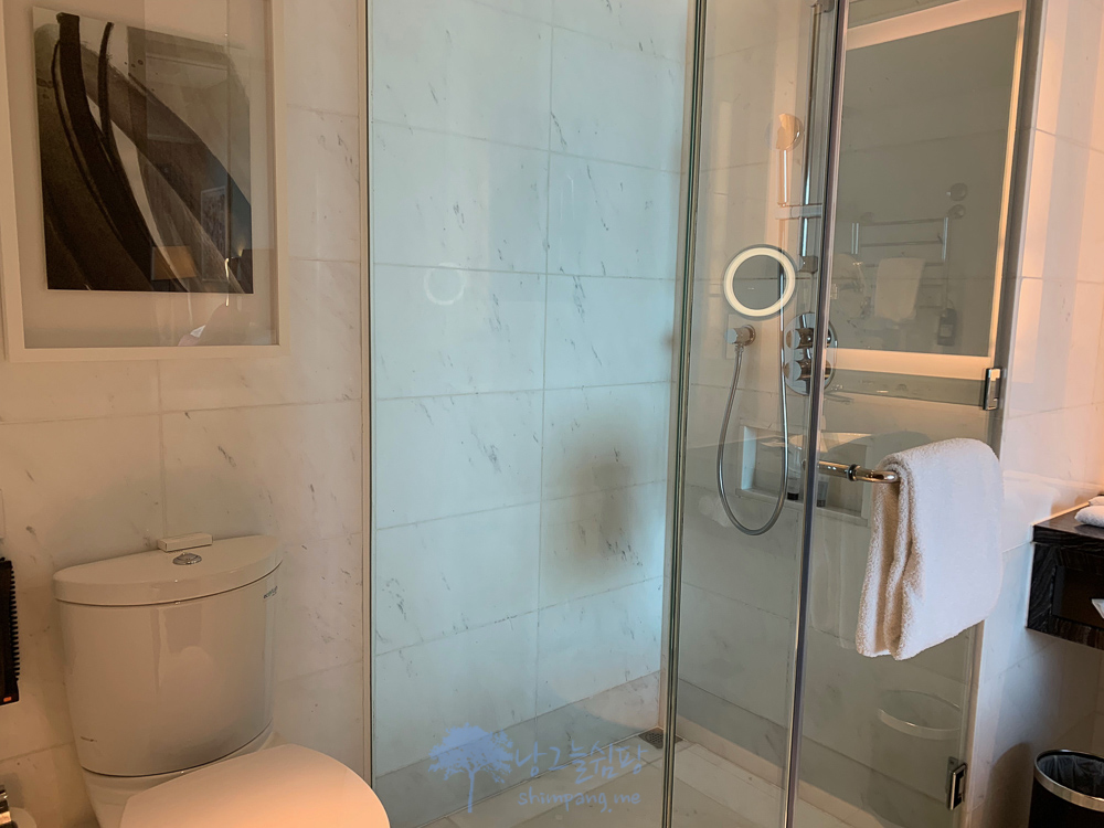 세면대에 있는 원형 확대 거울은 조명이 함께 붙어 있어서 실물보다 더 예쁘고 멋지게 보입니다... ^^;